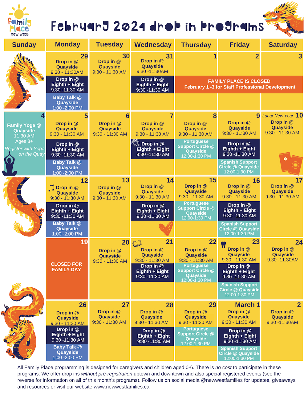 February 2024 Drop-in Program calendar